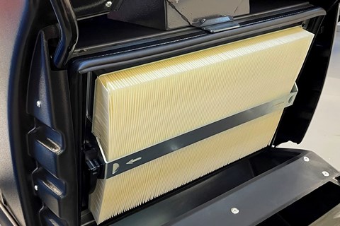De veegmachine is standaard voorzien met een vlakfilter met een oppervlakte van 4 m². Deze kan elektrisch gereinigd worden door de automatische filterreiniging.