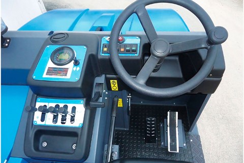 De veegmachine is zeer eenvoudig te bedienen dankzij de hendels die binnen handbereik zijn gepositioneerd. Urenteller en batterijindicator bevinden zich binnen oogopslag.