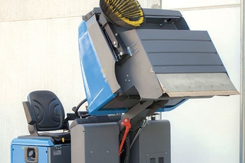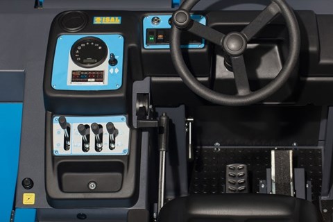De veegmachine is zeer eenvoudig te bedienen dankzij de hendels die binnen handbereik zijn gepositioneerd. Urenteller en batterijindicator bevinden zich binnen oogopslag.