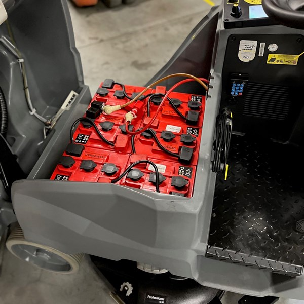 Toestel werd voorzien met een nieuwe 6x nieuwe tractie zuur batterijen. Tegen een meerprijs kan het toestel ook uitgerust worden met onderhoudsvrije batterijen.