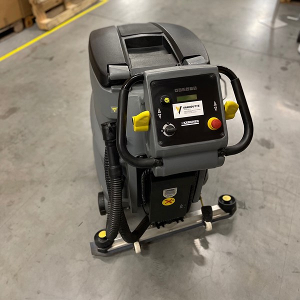 Kärcher tweedehands schrobmachine B60 met zeer weinig draaiuren in zeer goede staat. Toestel voorzien met een ingebouwde lader en tractie batterijen.