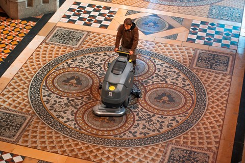 Naar gelang de behoefte kan de borsteldruk van de borstelkop verhoogd worden van 30 tot 50 kg. Een lagere borsteldruk is interessant bij een lichte vervuiling en kwetsbare vloeren, een zware borsteldruk bij zware verontreiniging.