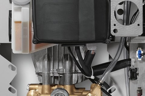 Je kan de hogedrukreiniger voorzien met een voorschakeling van een heetwaterinstallatie. Het basismodel kan een watertemperatuur van 70°C aan. De geavanceerde pomp tot 85°C