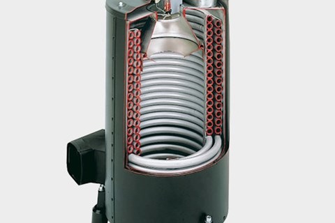 De verticale brander en verwarmingsspiraal zorgen voor een hoge verwarmingscapaciteit. Deze constructie zorgt voor een vermijding van condensvorming en corrosie door verticale constructie.